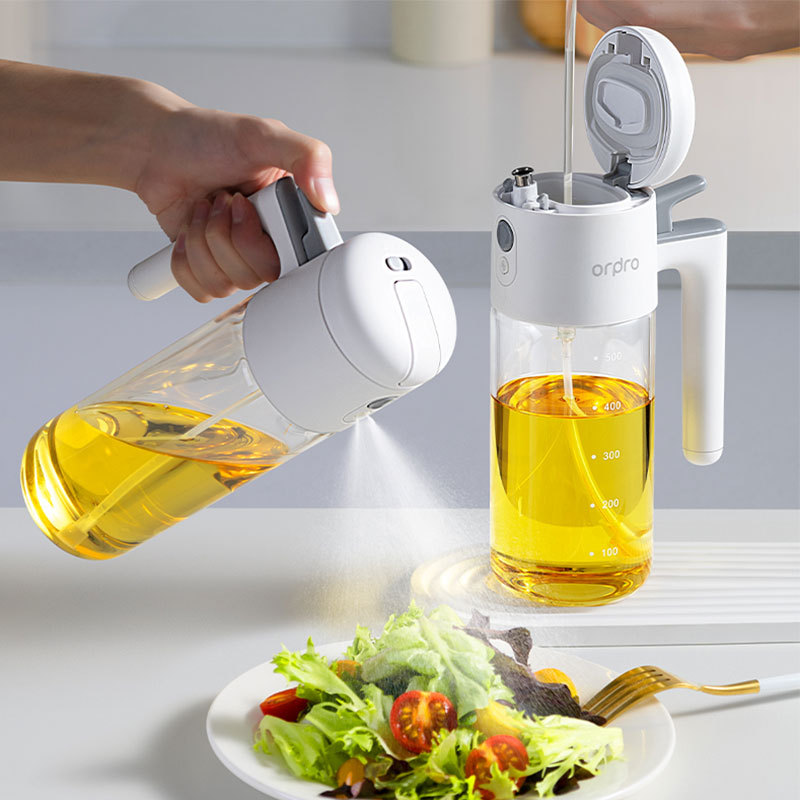 スプレーと注ぐ両用食用油ボトル、ミストキッチン家庭用調味料、ガラスオイルなし、醤油、酢オイルボトル