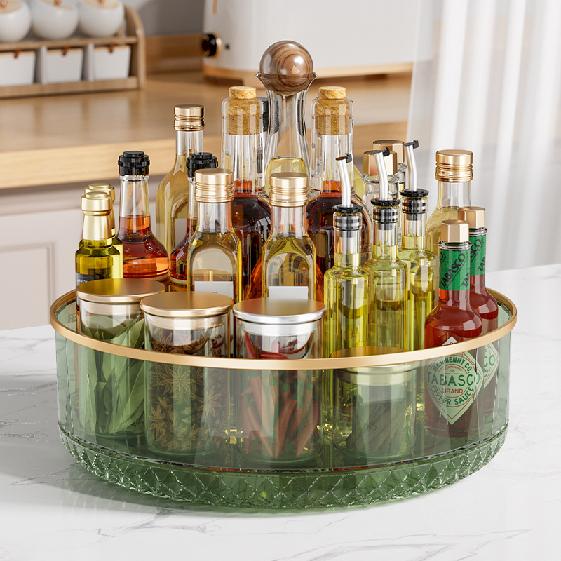 回転式調味料収納ラック キッチン用油、塩、醤油、調味料トレイ用品収納ボックス 調味料棚