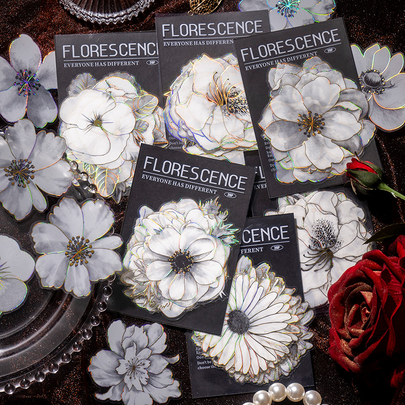 美しい一日petシール夜花シリーズ箔押し花素材手帳装飾タイル6種類