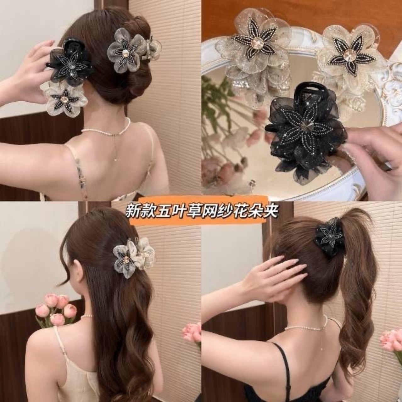 2025年新しくアップグレードされた五葉のクローバーメッシュフラワーグリッパーポニーテールクリップボールヘッドクリップ後頭部シャーククリップ