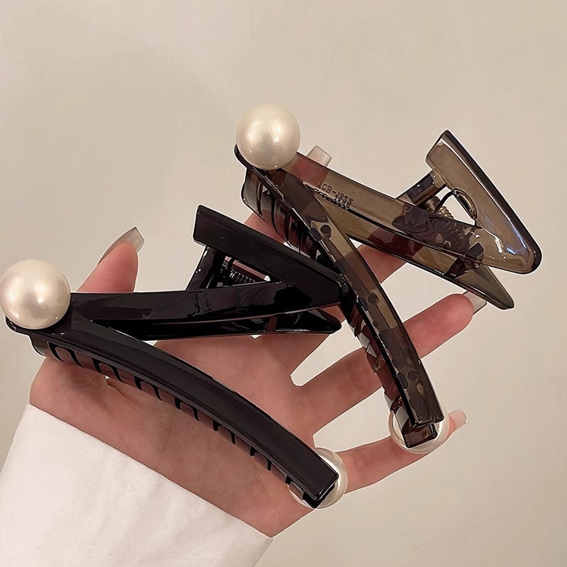 シンプルなレトロなクリップ女性2025新高級感後頭部気質盤髪クリップファッション真珠サメクリップ