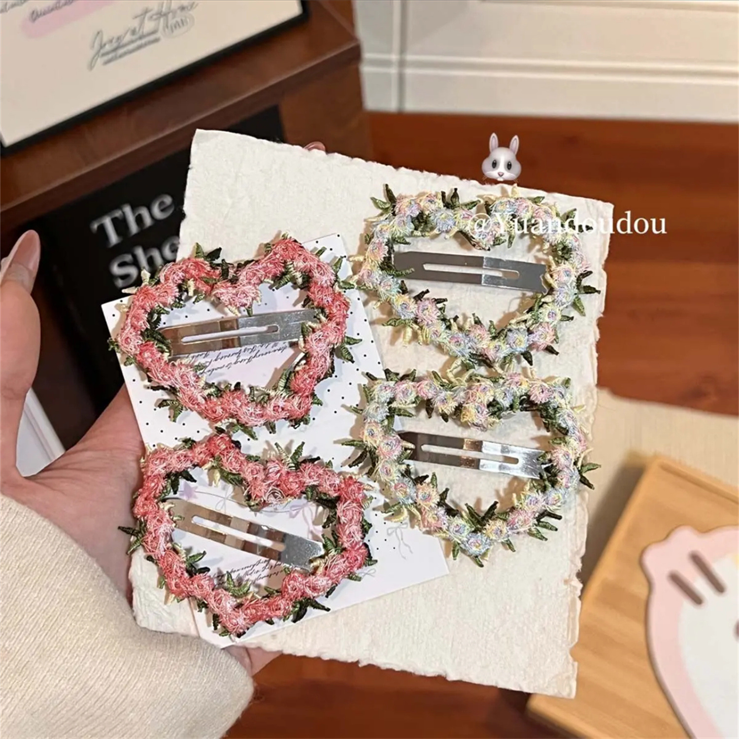 2025 春夏雰囲気ラブヘアピンサイドピンク甘いスーパー妖精刺繍花前髪クリップヘアアクセサリー