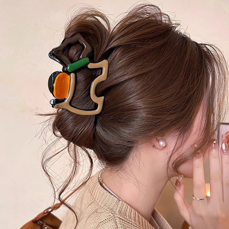 コントラストカラーのグリッターデザイン子犬女性 2025 新しいハイエンド大型サメクリップヘアクリップ後頭部クリップヘアアクセサリー
