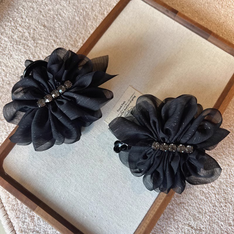 気質ラインストーンバナナクリップ韓国ヘッドバンドポニーテールクリップブラックメッシュプリーツリボンクリップ後頭部クリップ