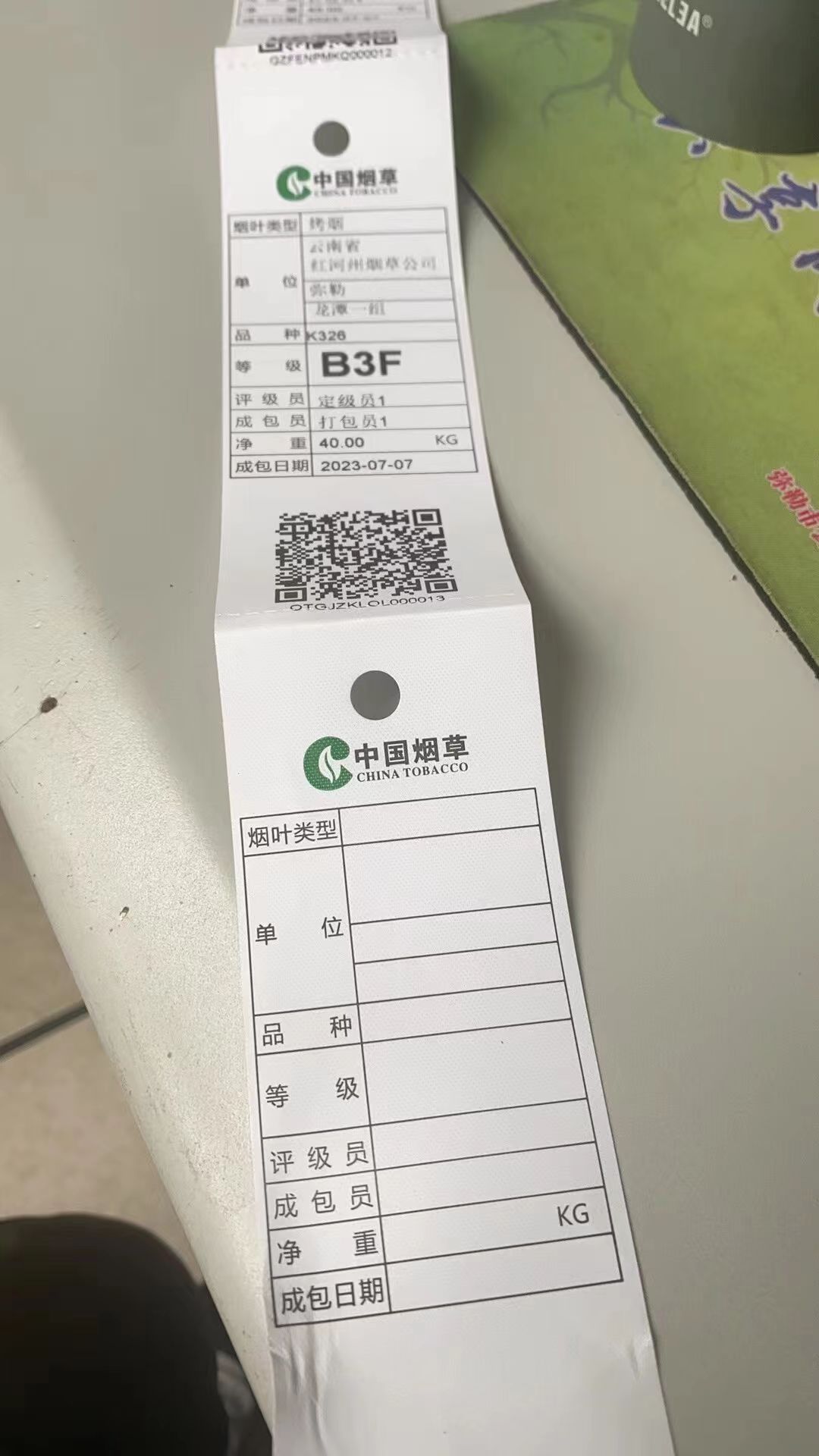可変情報二次元コード洗荷印服装襟札tobacco packing tag