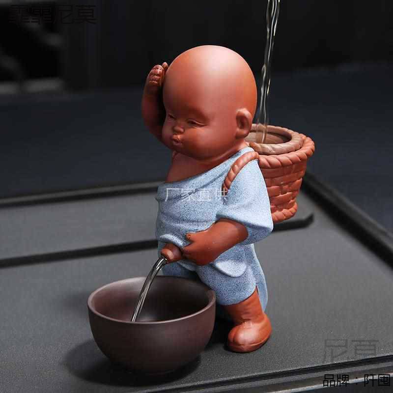 紫砂噴水茶寵置物変色陶磁器小僧おしっこ窯茶玩具部品人物