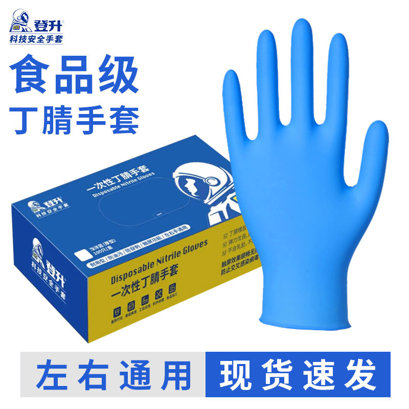 登昇使い捨て超厚タイプ快適ブルー純ニトリルゴム手袋工業食品美髪ネイルアート手袋