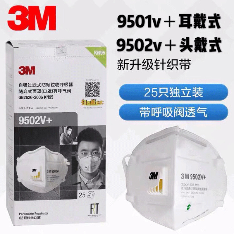 3m 9501v +/9502v + 防護マスク防曇pm2.5防粉塵kn95防粒子状物質独立箱