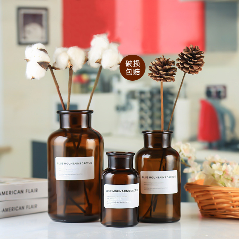 茶色ガラス北欧ins花瓶シンプルな家庭風装飾装飾装飾品レトロな水培瓶試薬花瓶