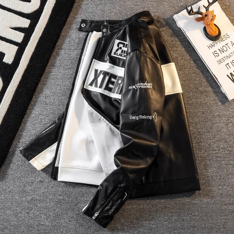 アメリカのレトロなアルファベットの革の服の機関車の服の男性の野球の服の春秋のタイプの立襟のジャケットの自己図 # PU05
