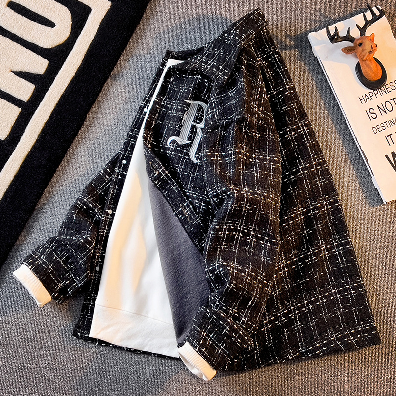小香風格子シャツ男春秋アメリカレトロシャツファッションブランド小衆アルファベット刺繍デザイン感コート