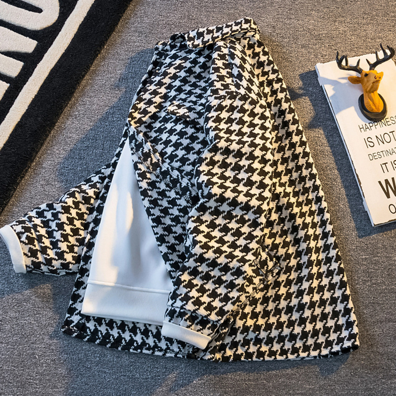レトロヴィンテージ千鳥チェックコートメンズファッションブランドゆったりカジュアル小香風ジャケット高級感トップス