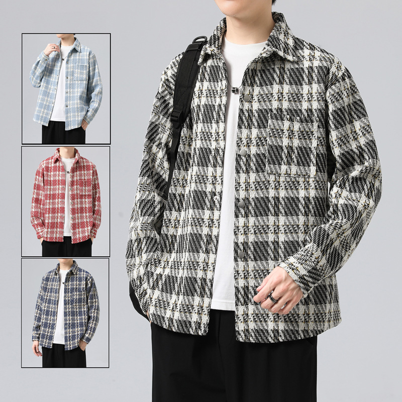 2024新型春秋のごろつきのハンサムでゆったりしたカジュアルなシャツの上着の男性の百合のファッションの格子のジャケットの男性
