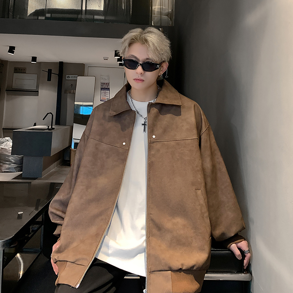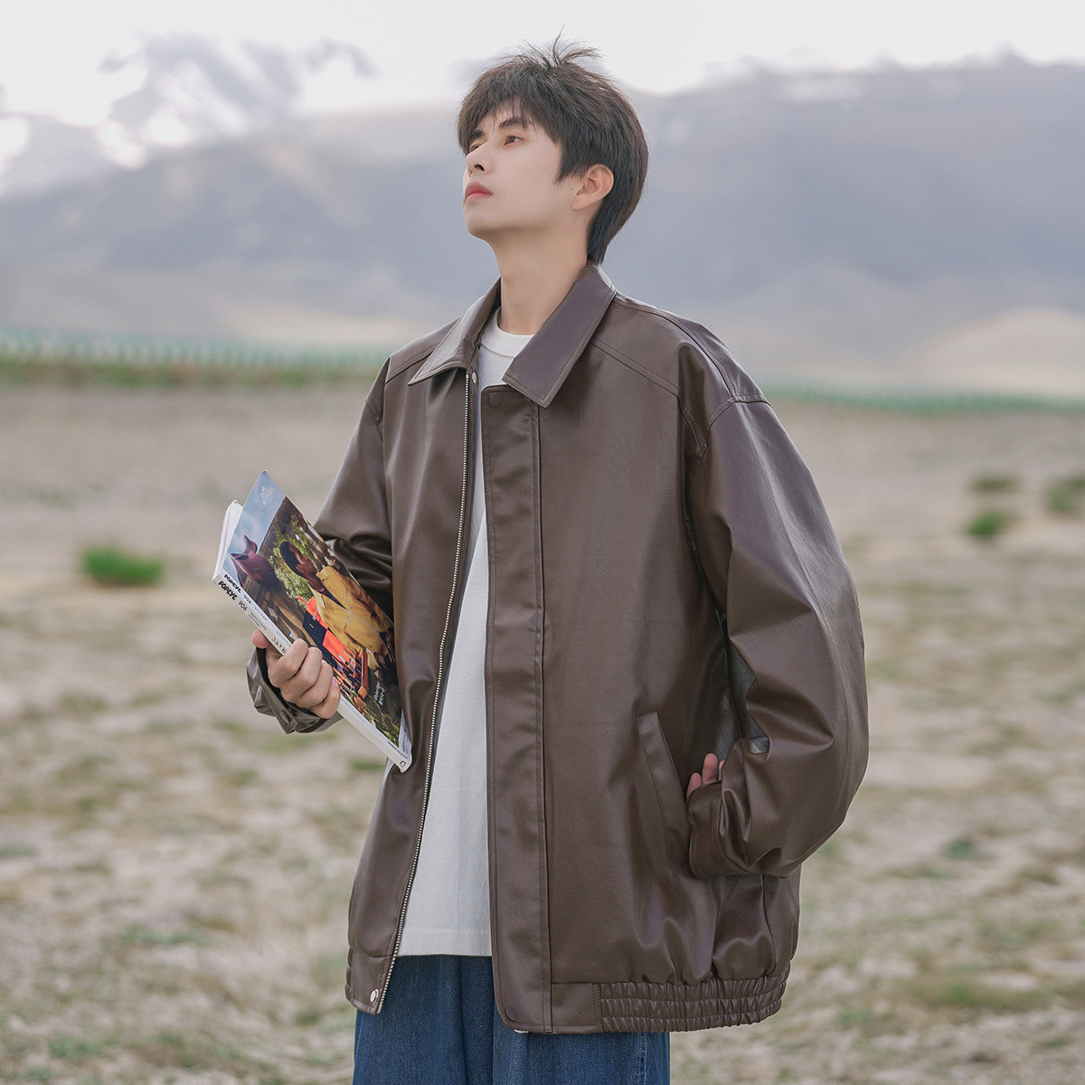 2024春秋秋の新型アメリカンレトロinsファッションブランドのごろつきは、ゆったりとしたカジュアルジャケットの皮衣コート男