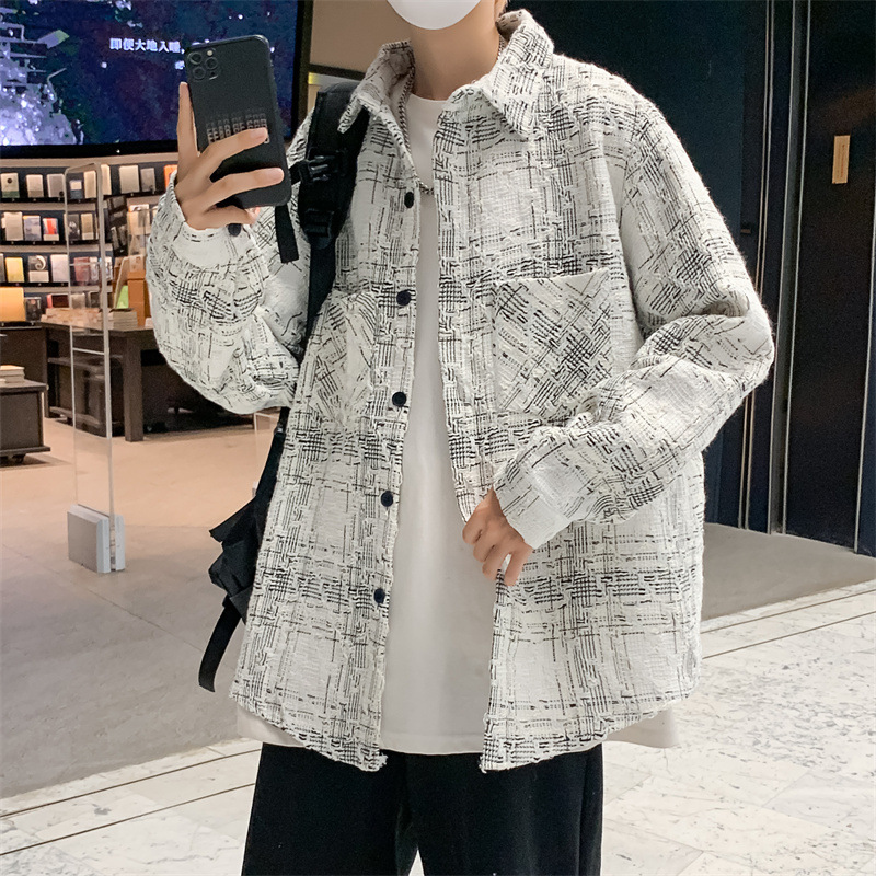 格子シャツ男型2024春秋日本系襟ジャケット白ファッション秋男男かっこいいコート男型