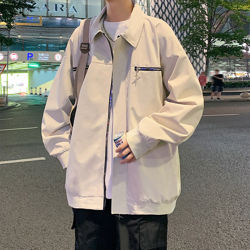 2024新型春秋折り襟カジュアルコートゆるい百合痞帅男子デザイン感上服ジャケット男