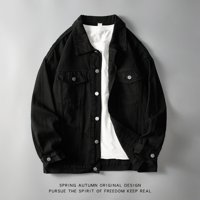 黒の工装デニムジャケット男性春秋2024新型アメリカ式高街潮牌コートカップル服上着