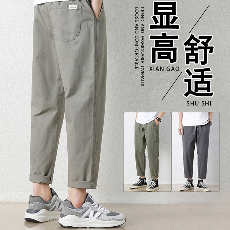 カジュアルパンツ男性2024夏の薄手のゆるいストレートの新しい工装ファッションブランドの9分スポーツパンツ男性