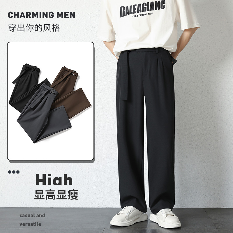 2024新型ゆるいスポーツパンツ男性垂直感ストレートパンツ男性カジュアル長ズボンモップ男子ズボン