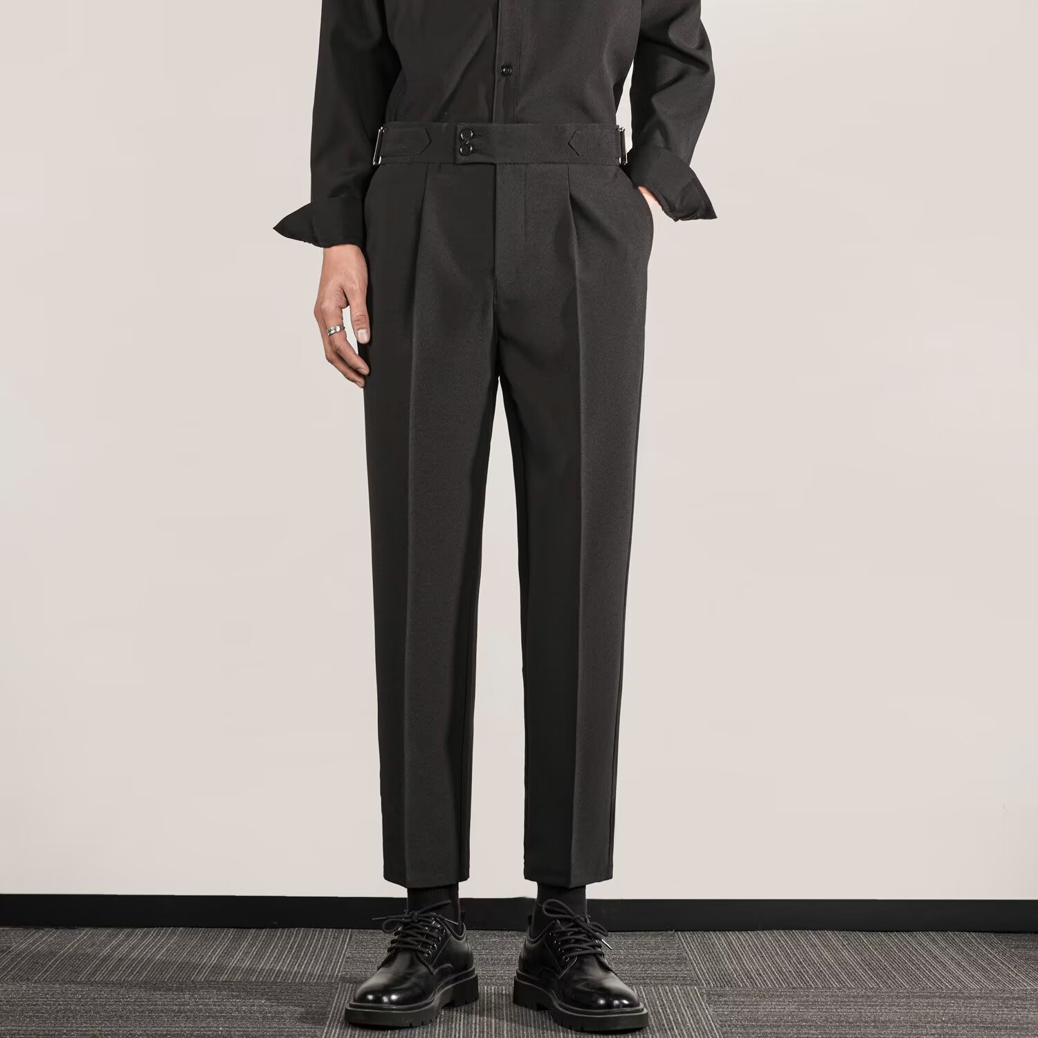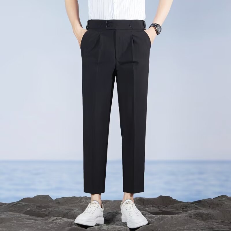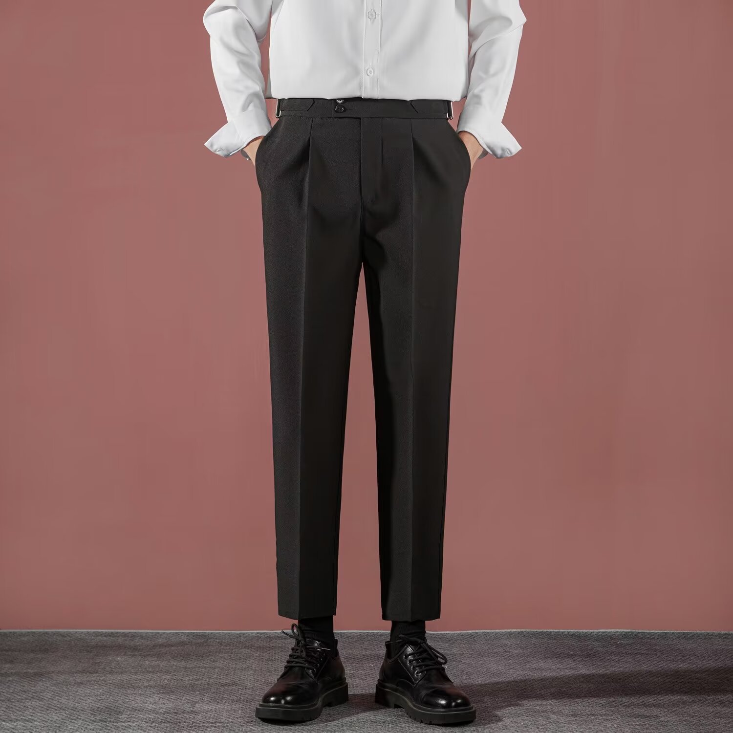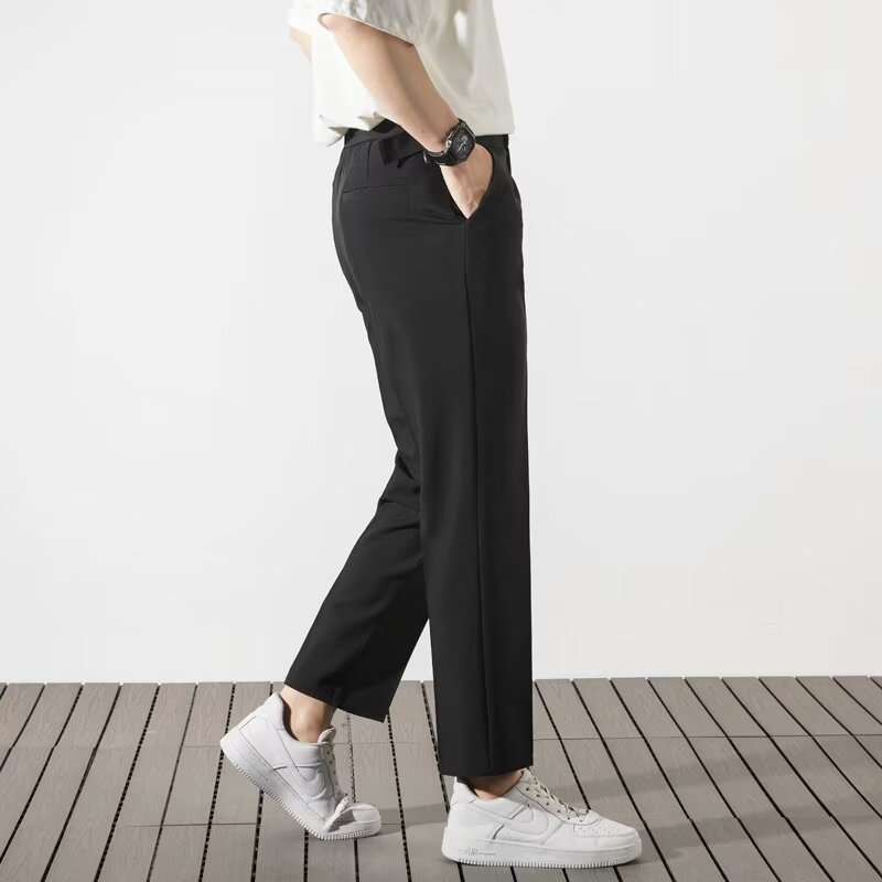 高級感のあるスーツの9分のズボンの男性の黒色のビジネスの軽熟のレジャーの2024春の秋のストレートのズボンの男性の潮
