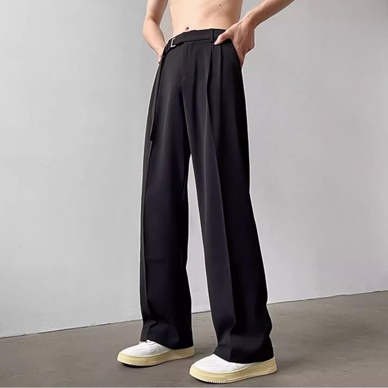 2024春秋のファッション高級ペンダント感百合痞帅直筒ゆるい純色カジュアルパンツズボン男性モデル