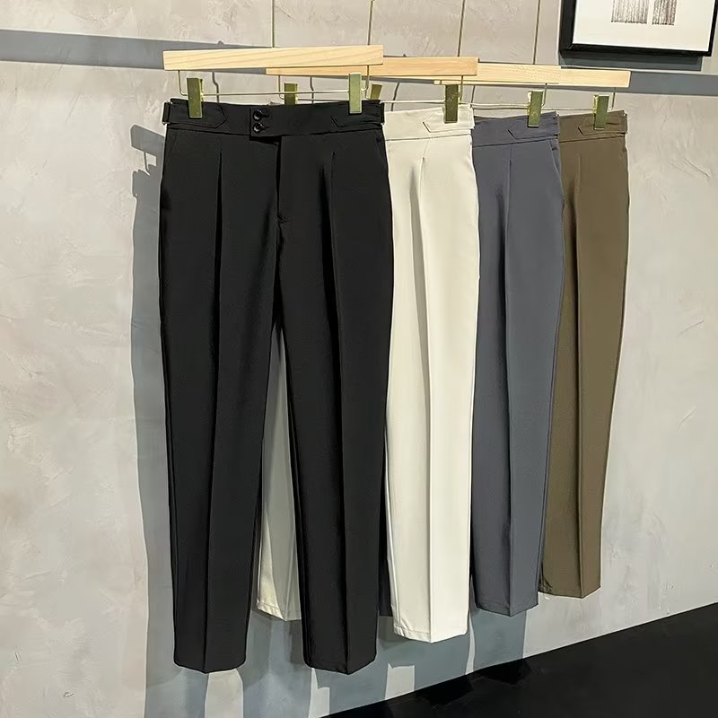 春と秋のスーツのズボンの男性のカジュアルなビジネスナポリのストレートの小さいズボンの百合の韓国版のファッションのシンプルな高腰のズボン