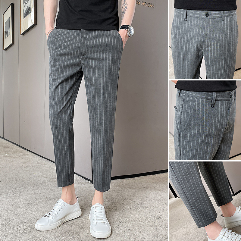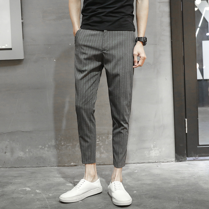 2024春夏男性カジュアルパンツ小足九分ズボン男性百合修身縞ズボン男性トレンドズボン男性