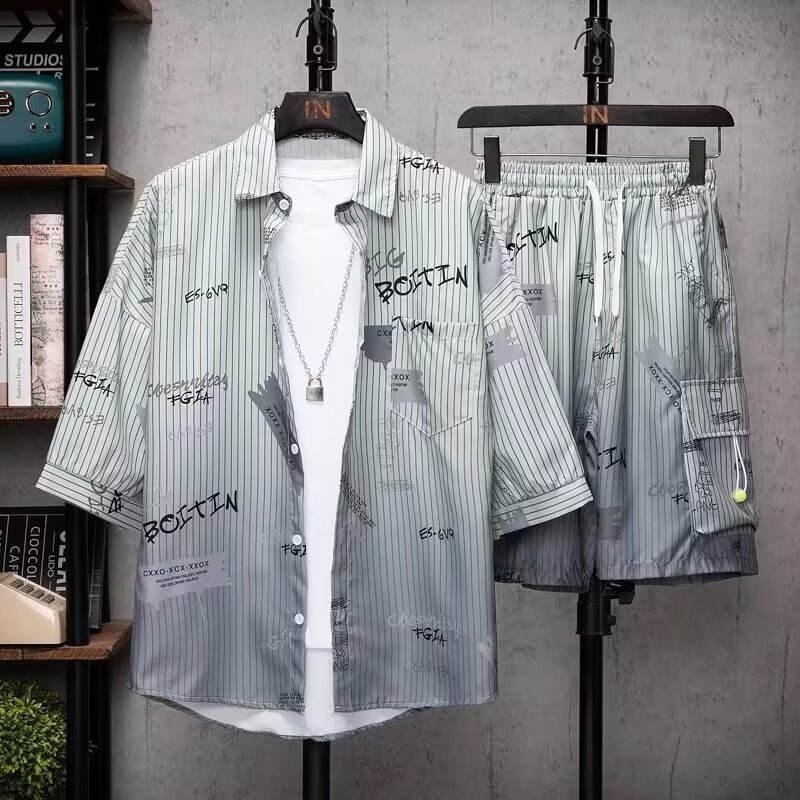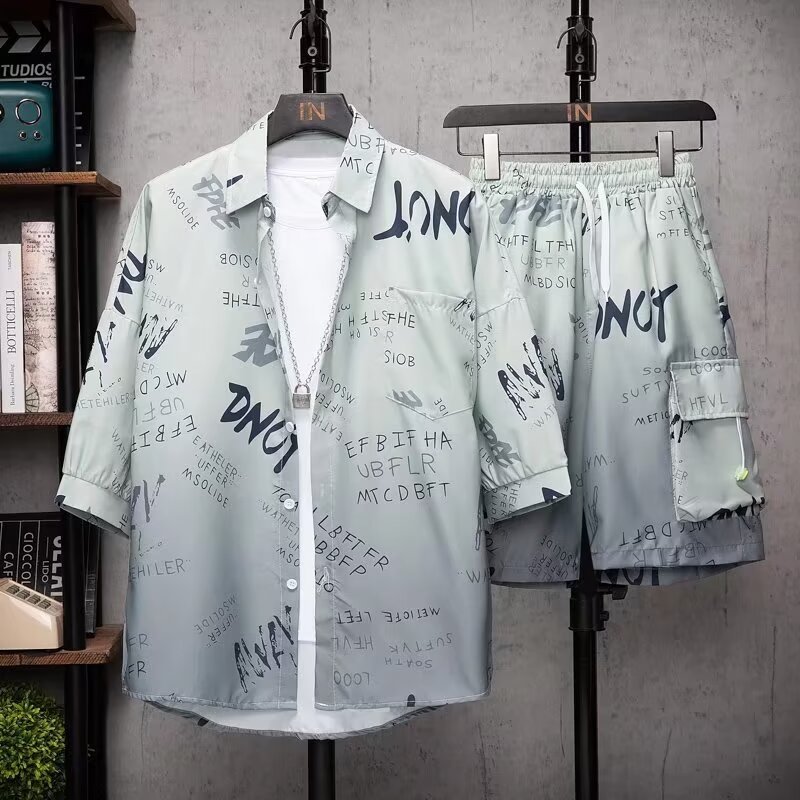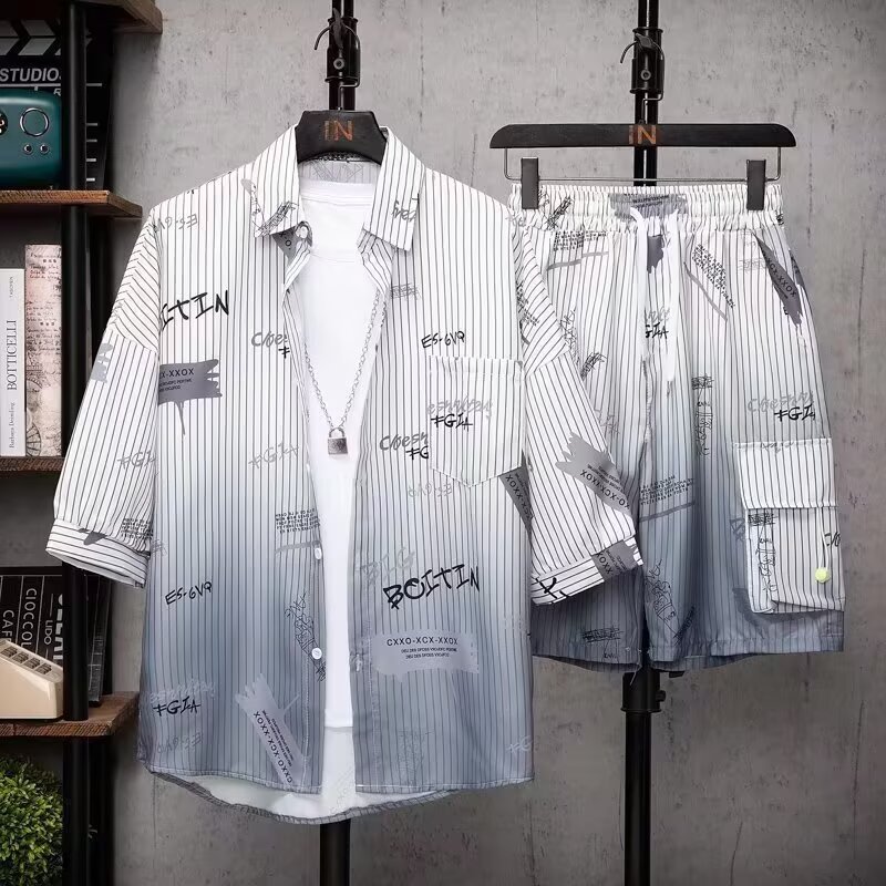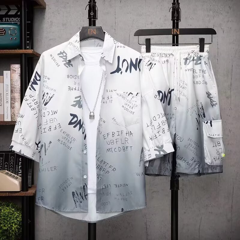 2024夏グラデーションシャツ男青年半袖シャツファッション五分中袖百合コート男