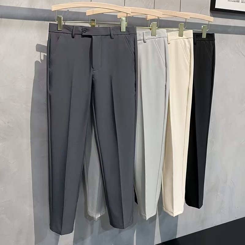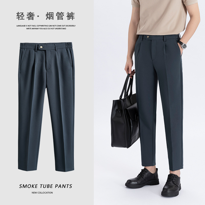 高級感のあるスーツの9分のズボンの男性の2024春と秋のビジネスの軽熟のカジュアルな夏のまっすぐな筒の修身のズボンの男性