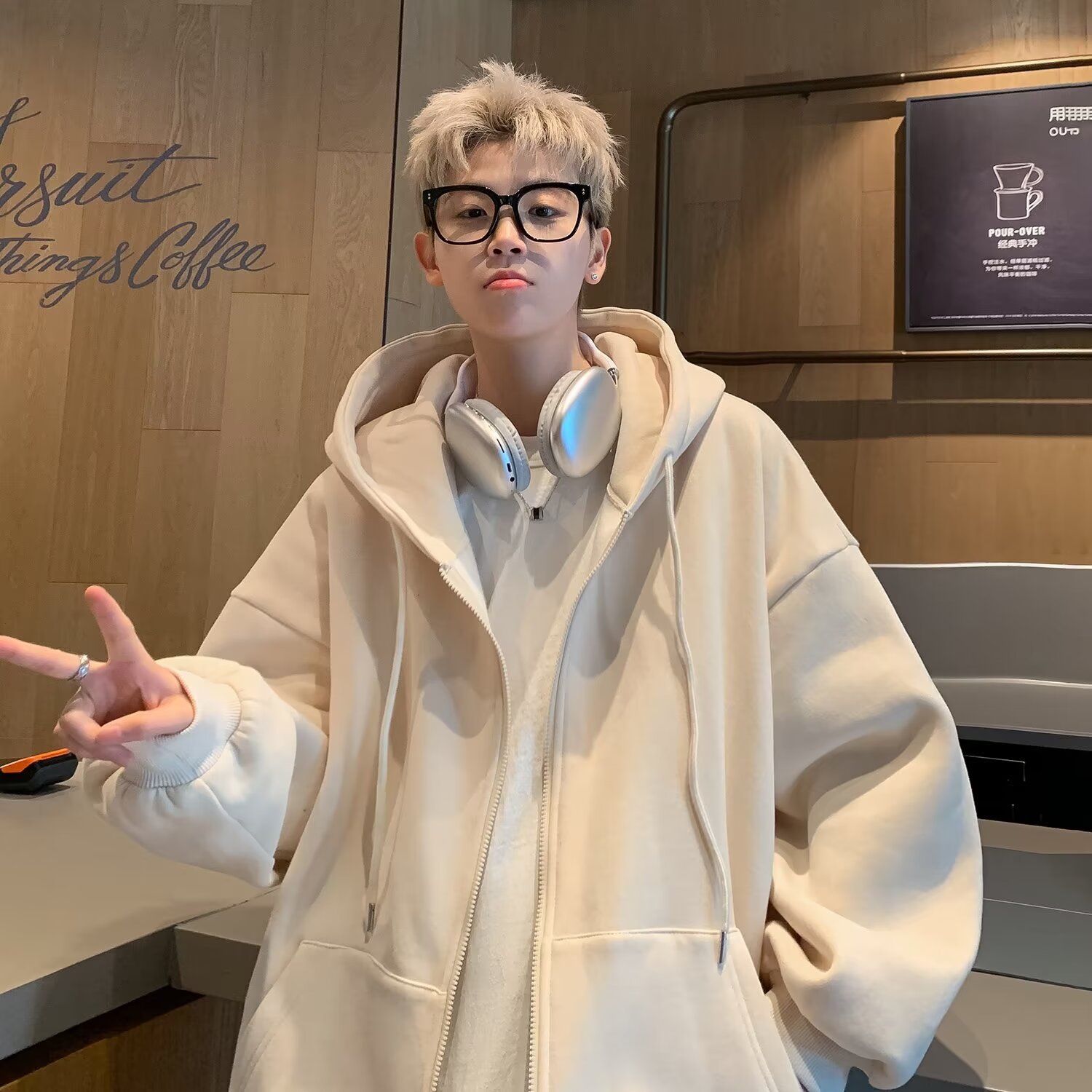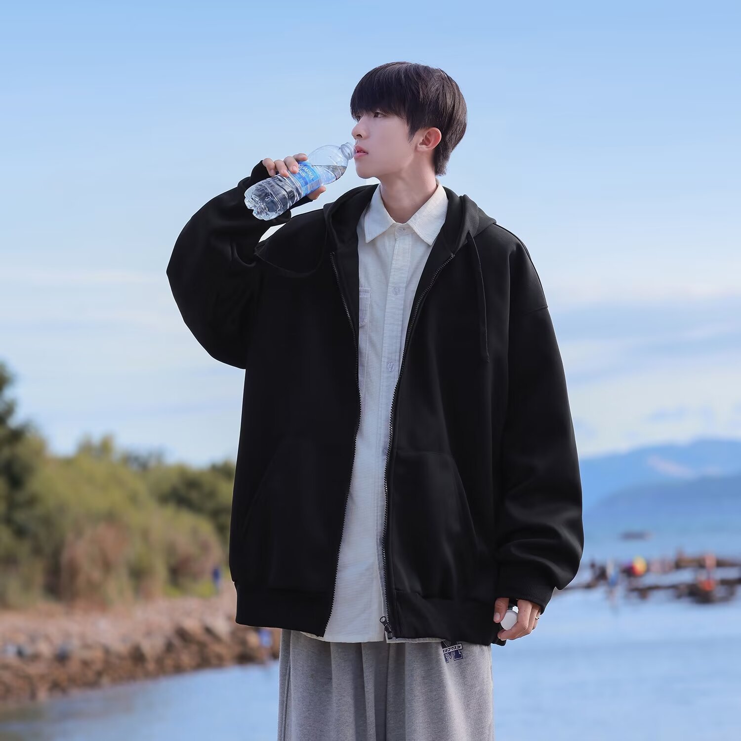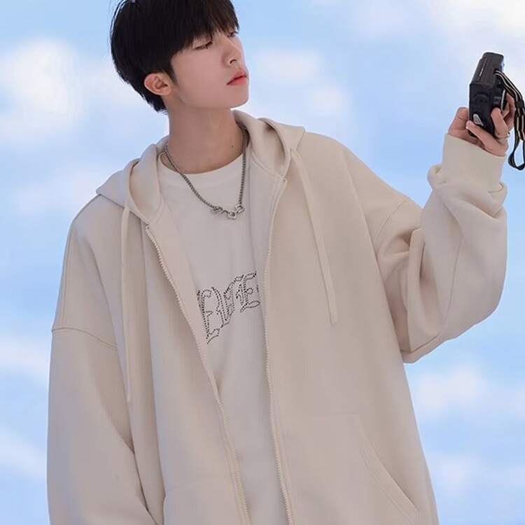 百合コートファッション2024新型春秋フード付きジッパー付きカーディガン男性スポーツカジュアル服