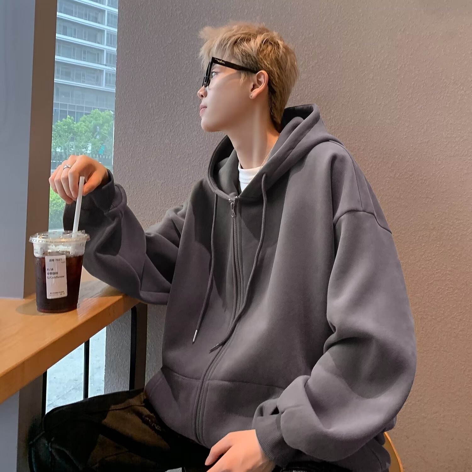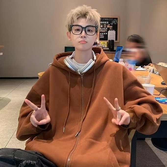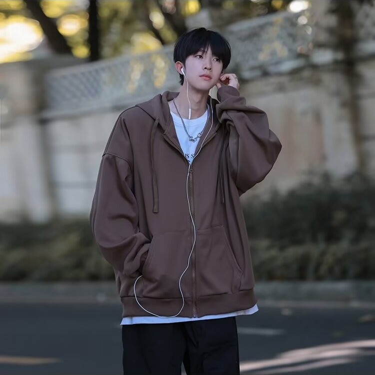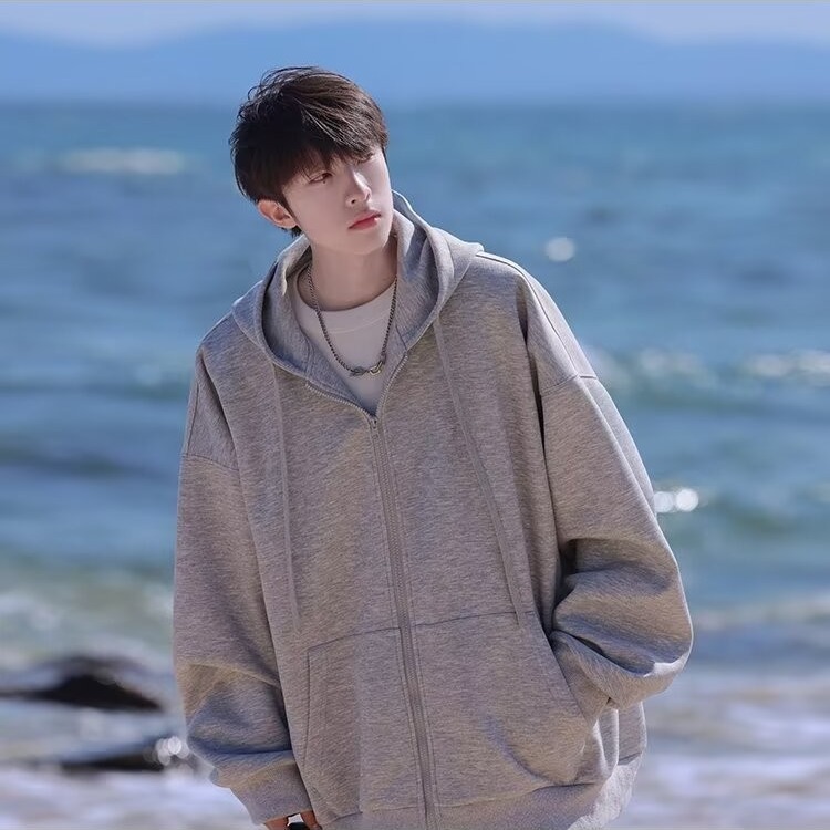 スポーツレジャーコートファッション2024新作春秋フード付きジッパー付きカーディガン純色男子上服