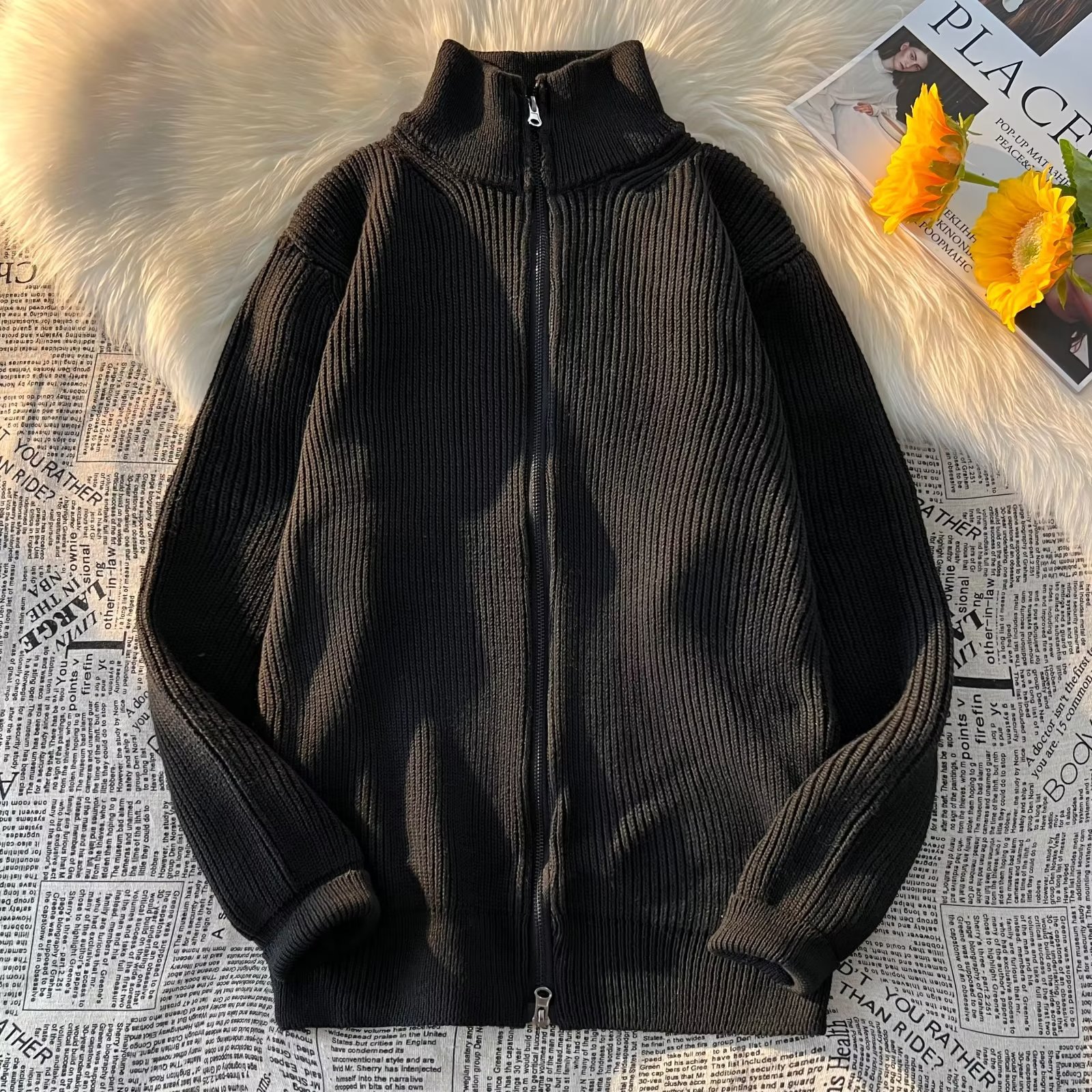 アメリカ式cleanfitレトロ立襟ニットカーディガンコート男性用日本式怠惰なカップル高級感セーター