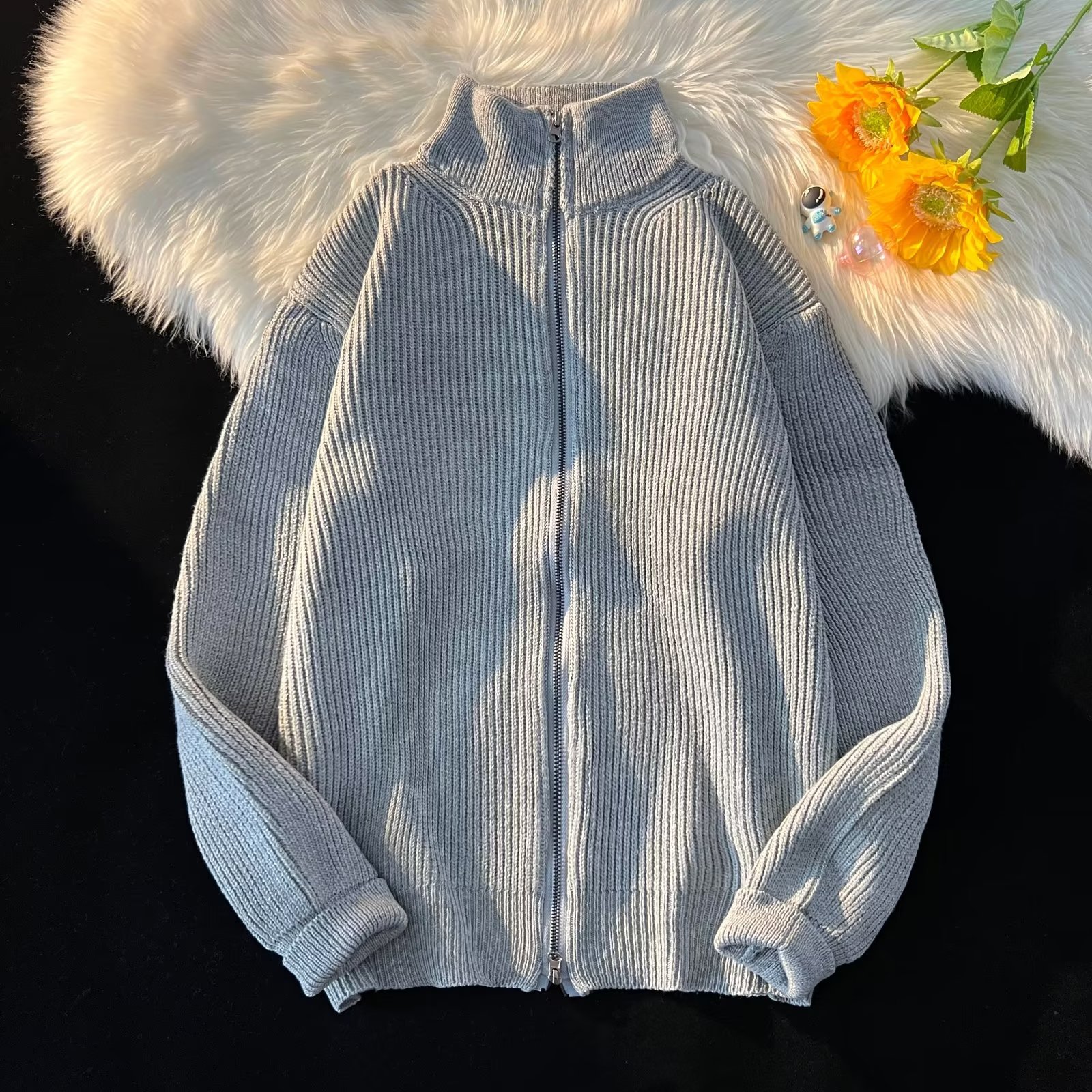 怠惰な風の立ち襟のファスナーのカーディガンのニットのカップルのセーターの春秋の高級感の怠惰な風のニットの上着のセーター