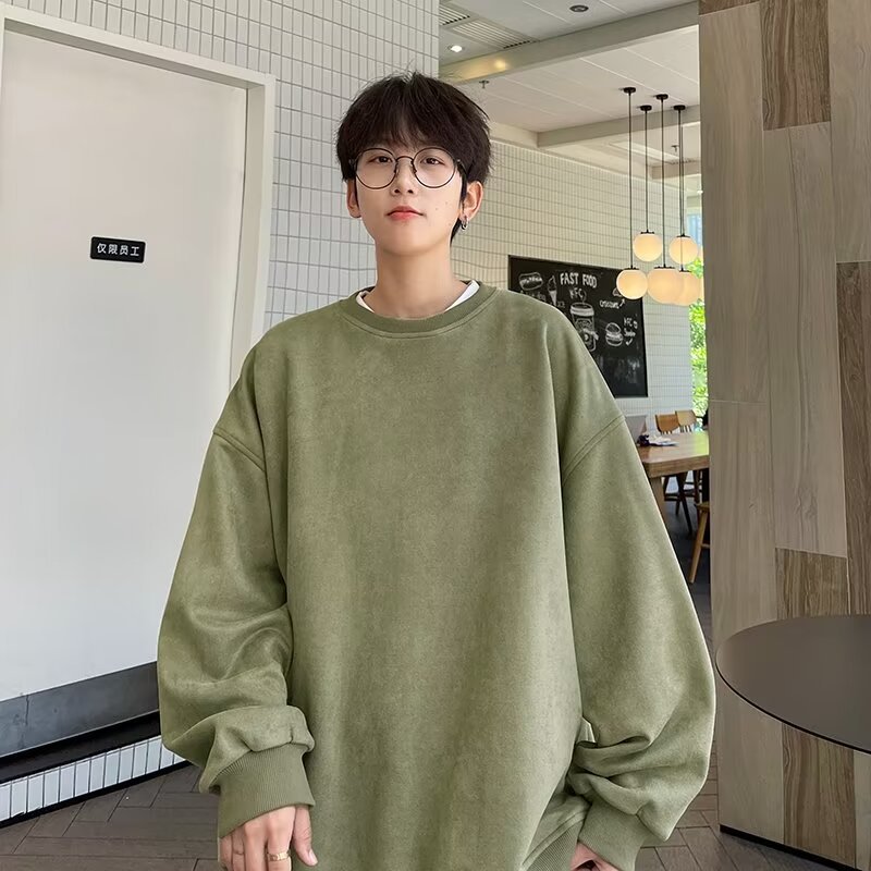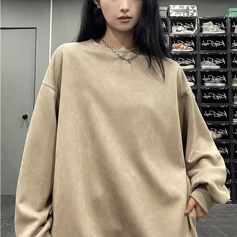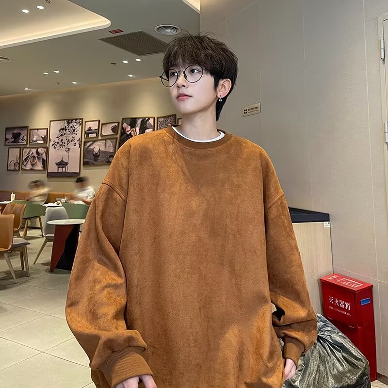 アメリカの重いポンドのスエードの丸首の衛衣の男性の2024春秋は長袖の格好いい運動の香港の風の中で上着を掛けます。