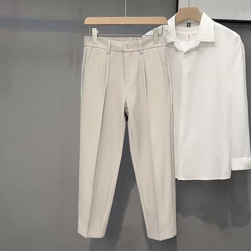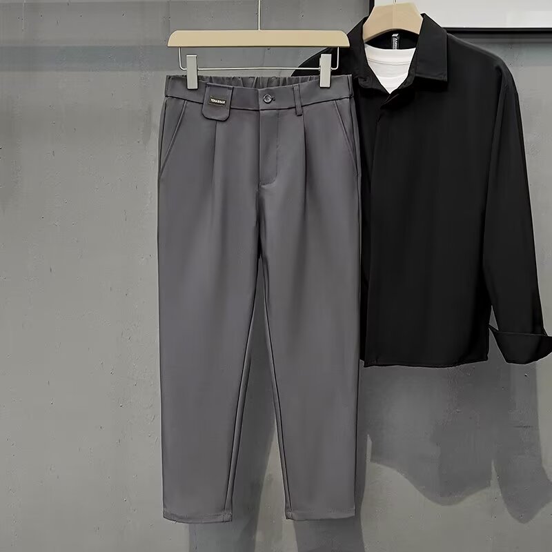 カジュアルパンツ男性ストレートゆるいトレンドパンツ男性ペンダント感2024春秋修身九分スーツパンツ