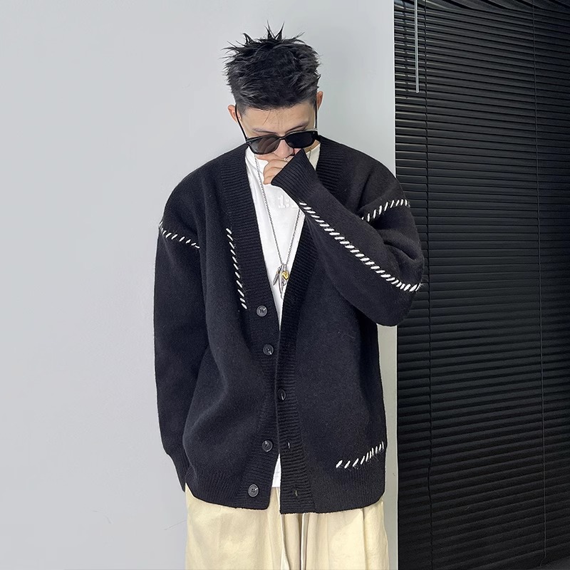 ニットカーディガンジャケット男2024新春秋日系ジッパーゆるいセーター男高級感カジュアル上着