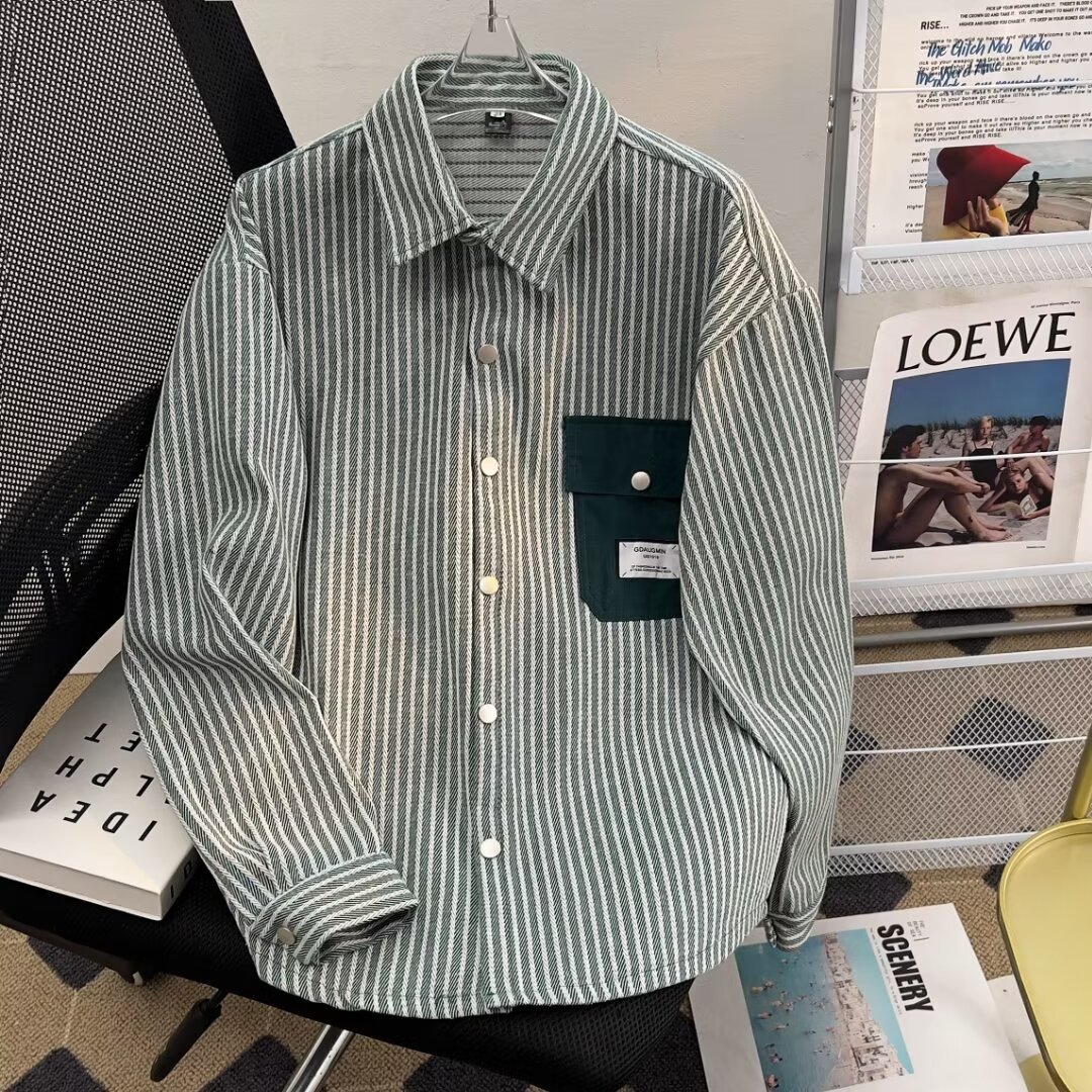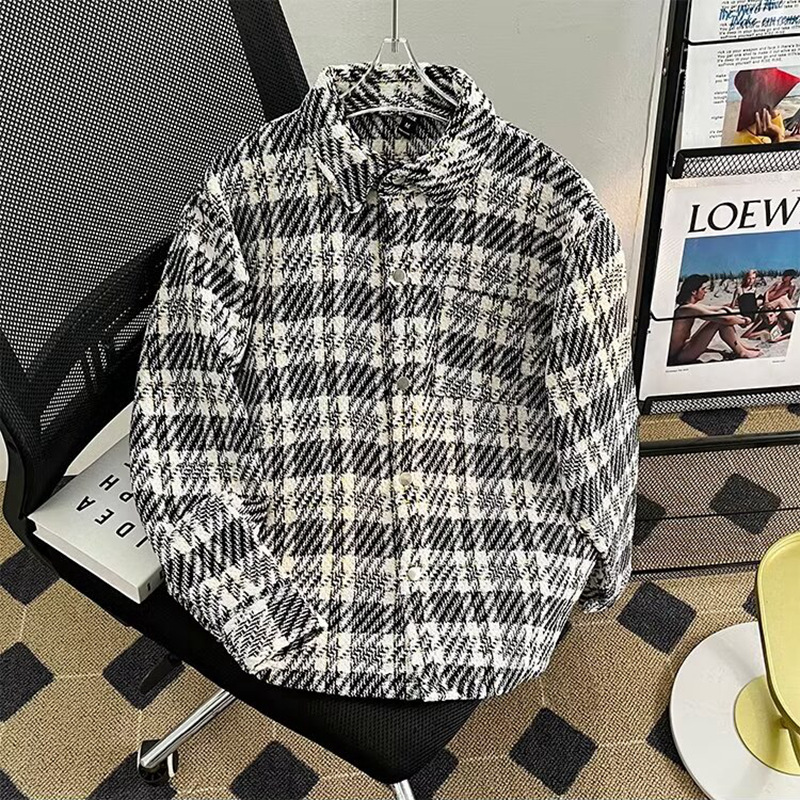 百合小香風コート男2024春秋ゆるいカジュアルブランド高級感格子シャツジャケット