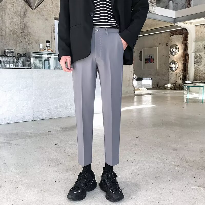 香港風の薄い灰色の小さいズボンの男性の熱い痕のまっすぐな筒の小さい足の9分は格好いいです。
