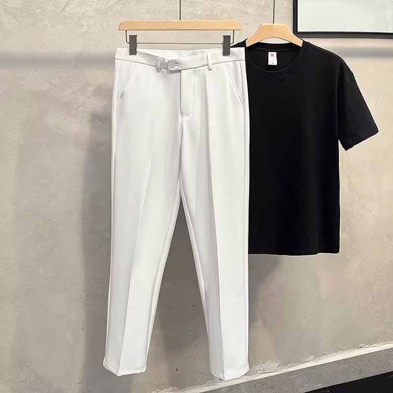 2024春の男性のスーツのズボンの韓国版の修身の小さいストレートのカジュアルなズボンのヤクザは熱を免除します。
