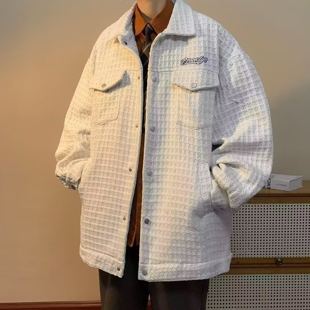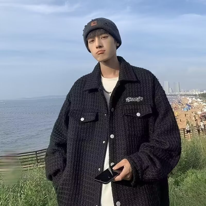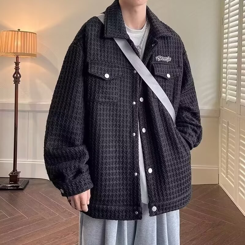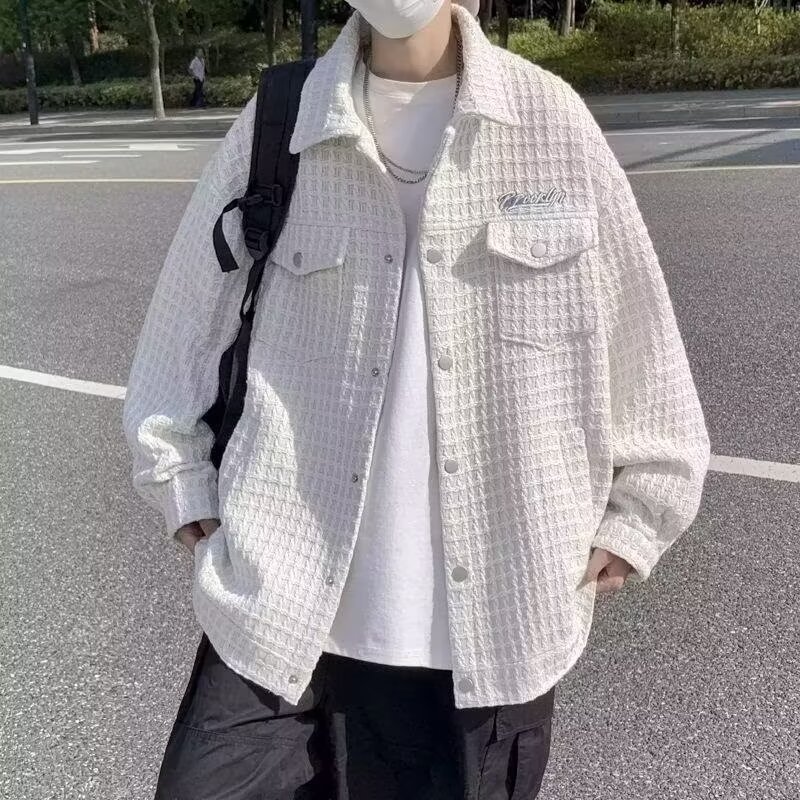 2024春秋編み格子小香風ジャケット男ゆるい韓国版ファッション気質ネット赤工装コート男