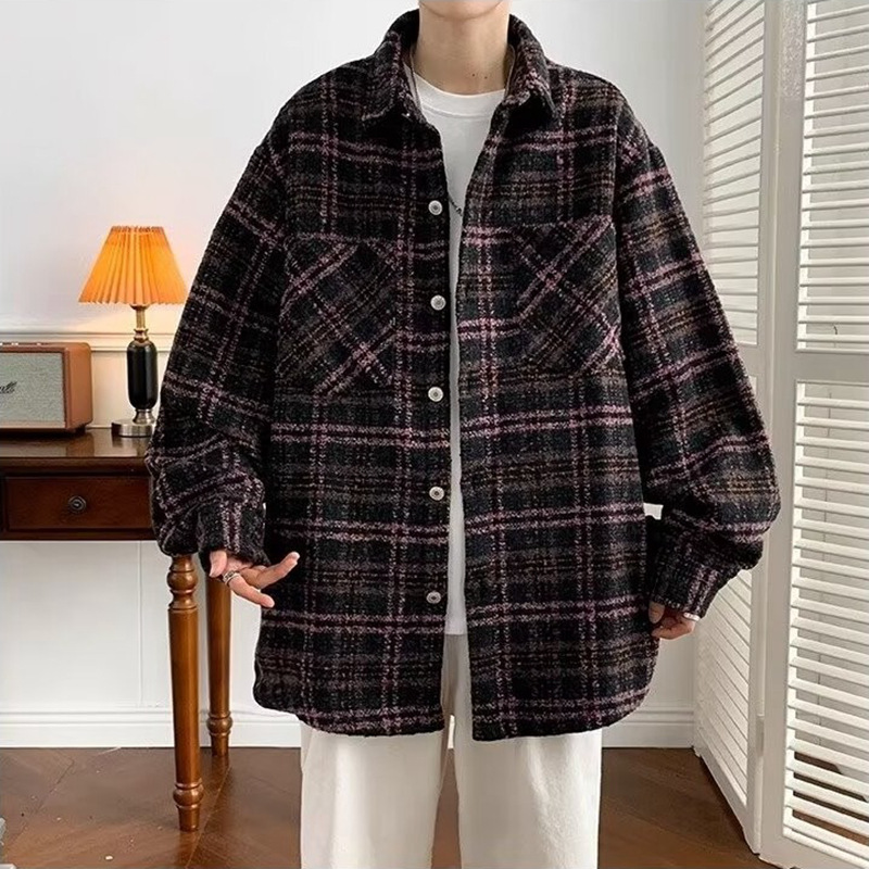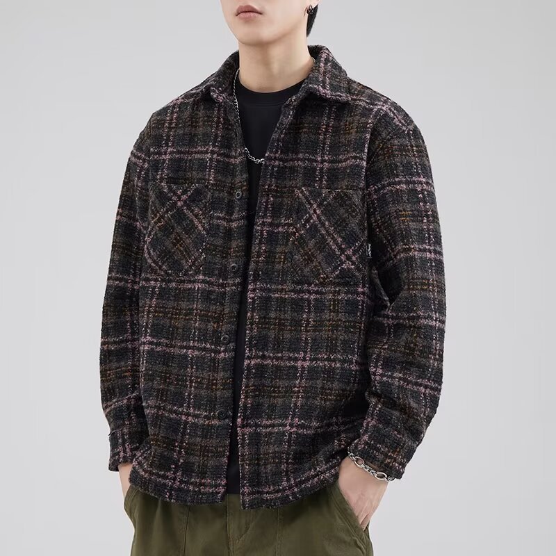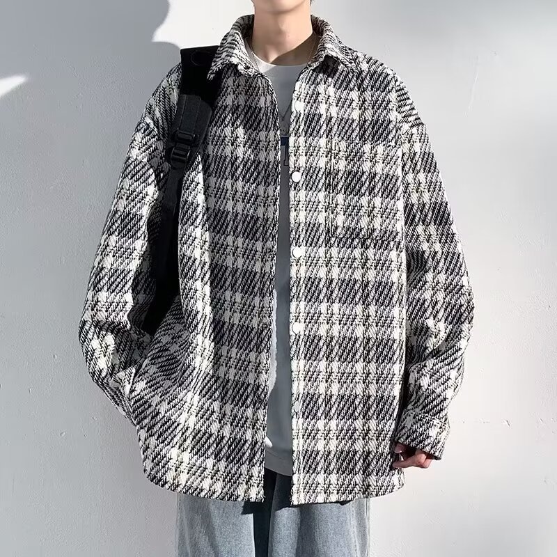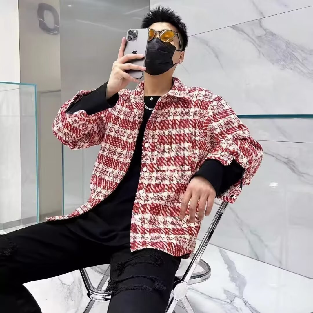 2024新型秋冬男型小香風コート高級感格子潮牌シャツゆるいカジュアルごろつきかっこいいジャケット