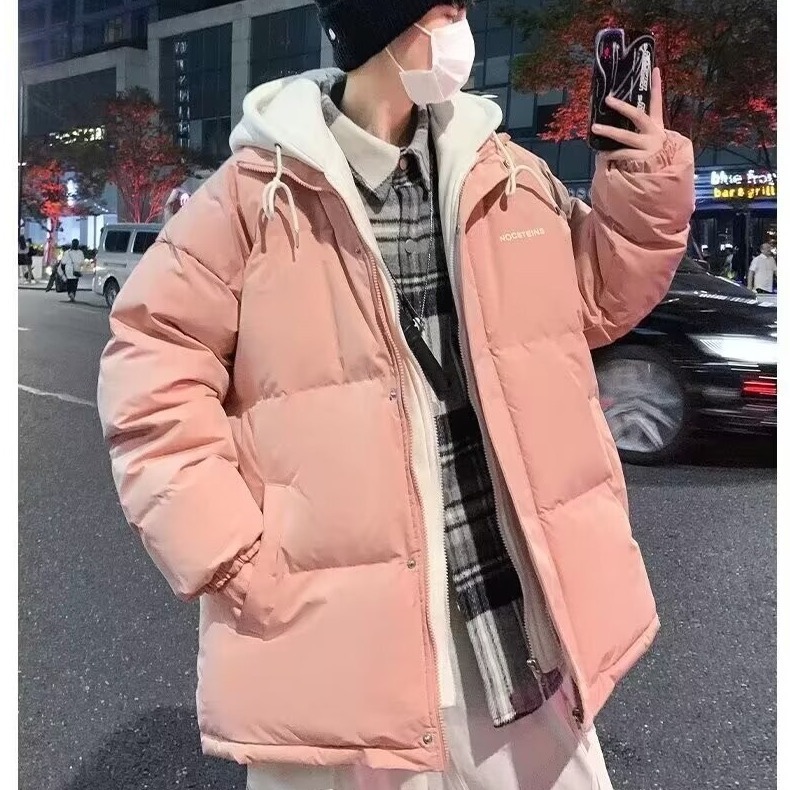 2024冬の新しいパン服綿服男性の短いカジュアル綿入れのゆるいファッション綿入れの帽子と偽の2枚
