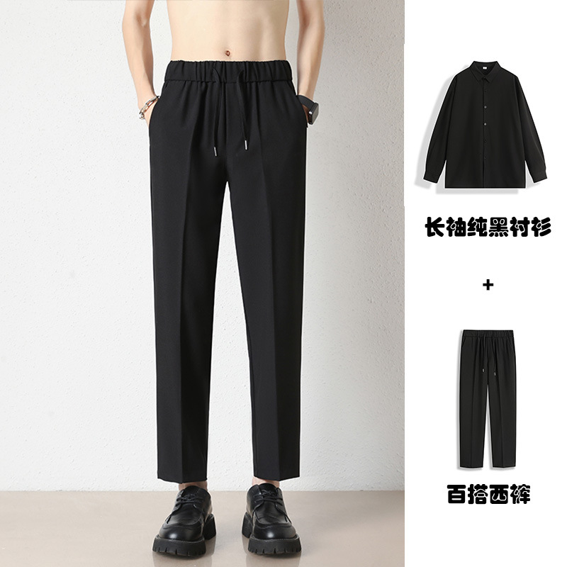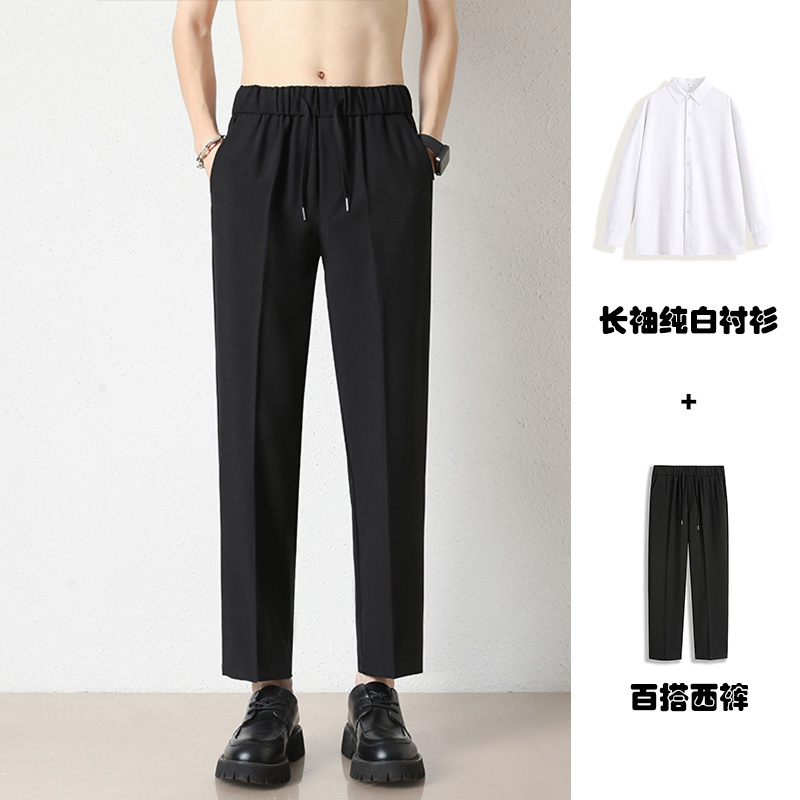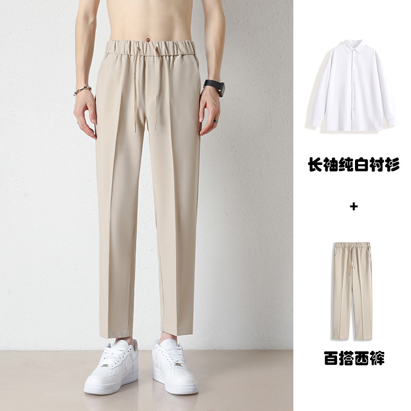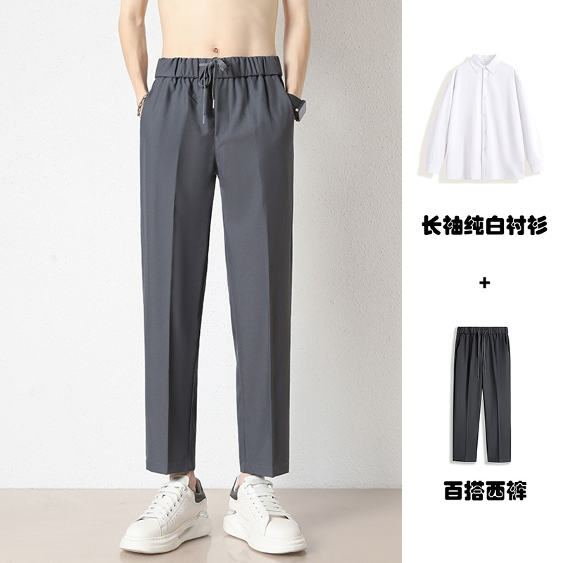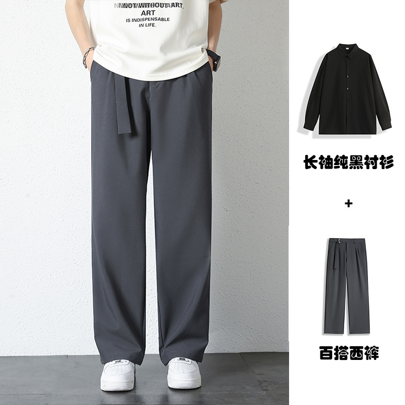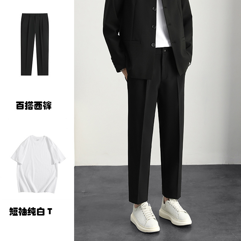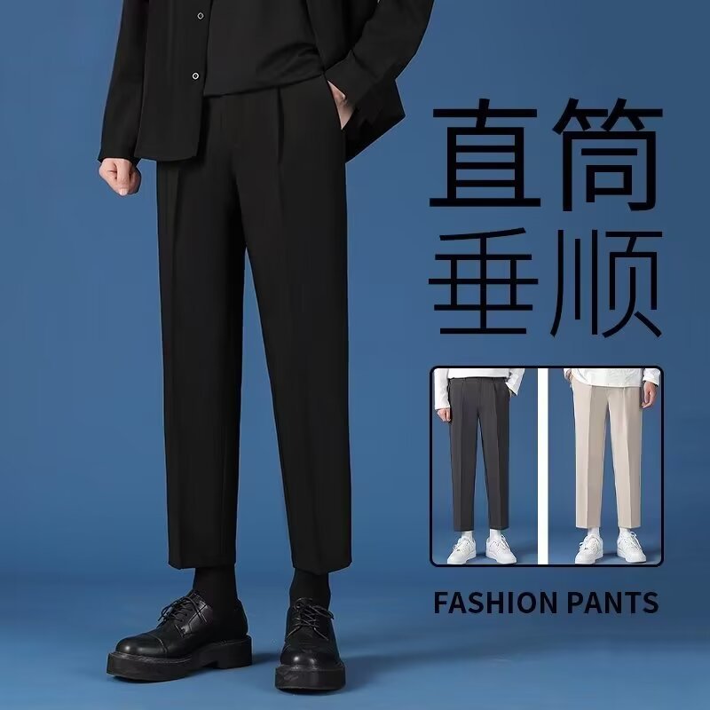 軽熟ビジネスストラップストレートスーツパンツメンズ2024春新作垂感修身九分カジュアルパンツセット
