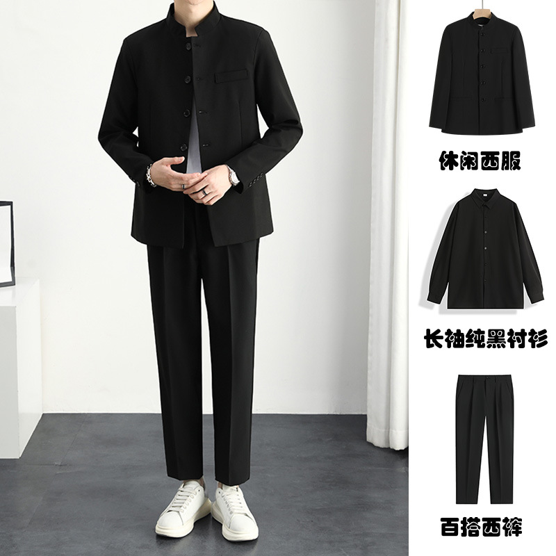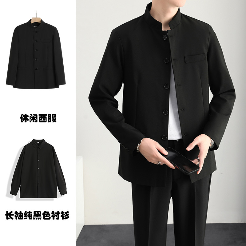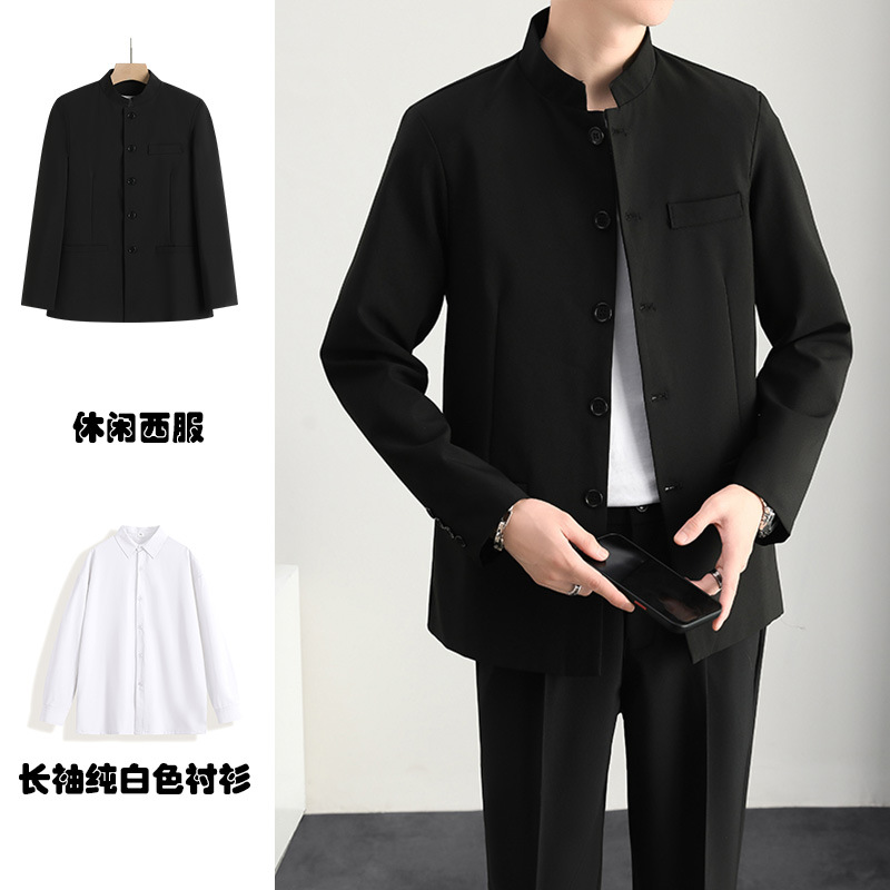 新中国式中山服スーツジャケット男春秋高級感痞帅中国風立襟カジュアルスーツセット
