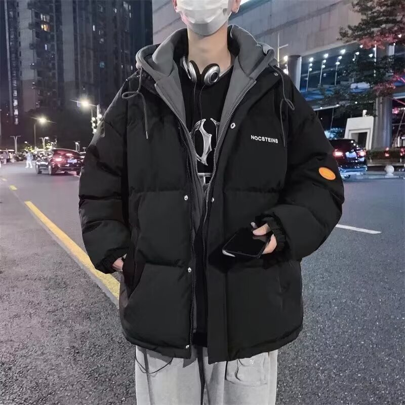潮牌パン綿衣男子2024冬香港風カップル偽2枚綿入れ綿服装男性コート潮