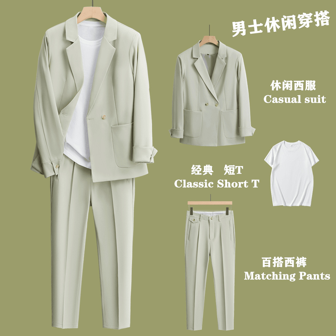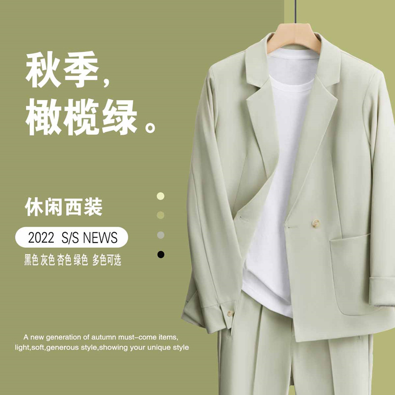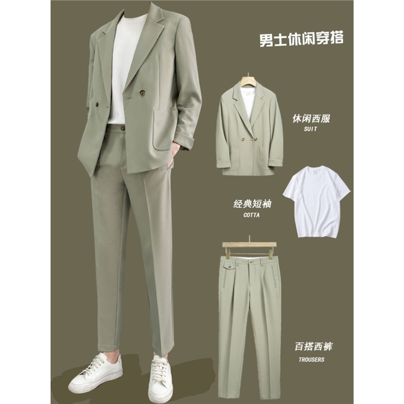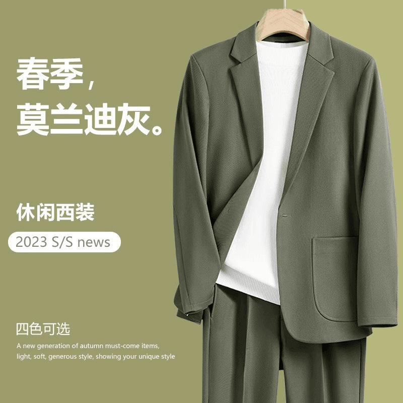 春の新型スーツセット男性カジュアルスーツセットと服オリーブグリーン気質長袖スーツセット