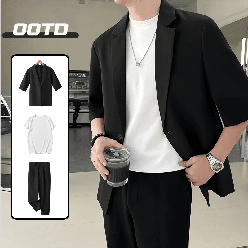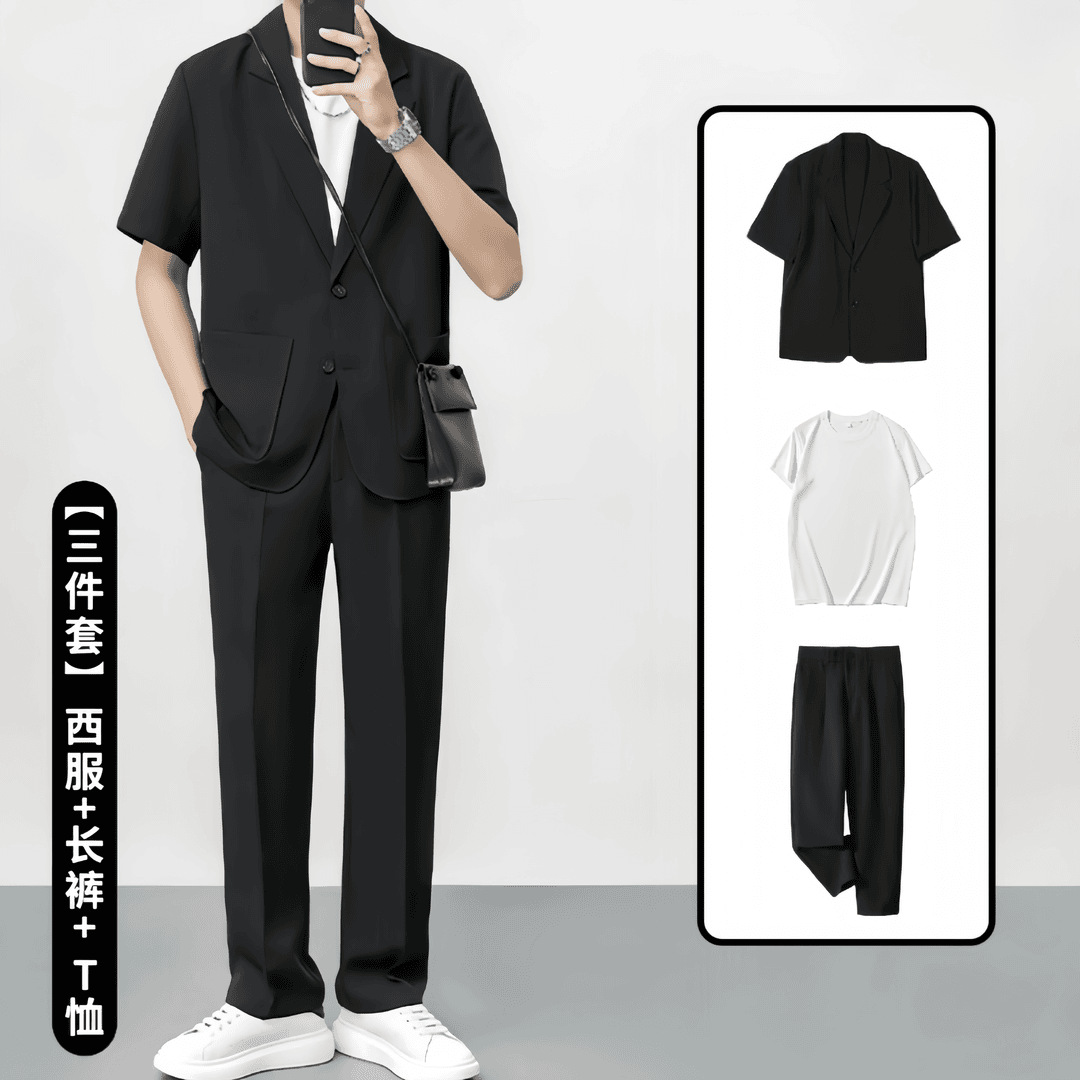 スーツの男性の夏の薄いタイプの氷の半袖の小さいスーツの男性のカジュアルな半袖のコートの涼しい韓国版の軽い熟風