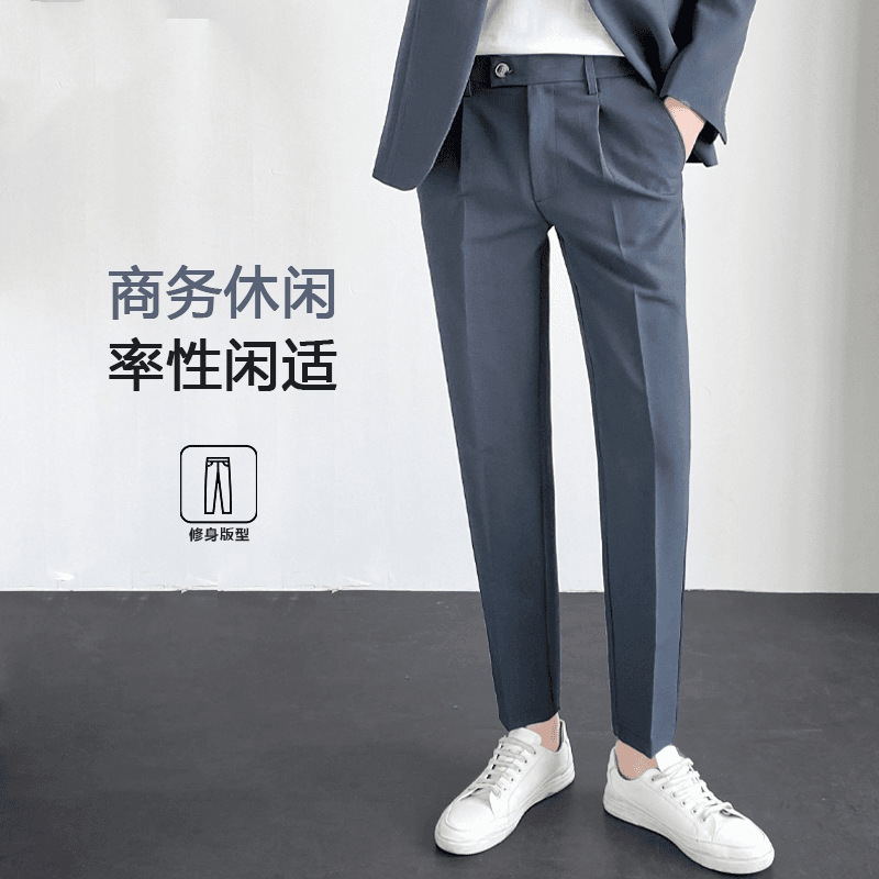男性カジュアルストレートズボンファッション修身ビジネス垂感スーツズボン韓国版薄足春秋百合