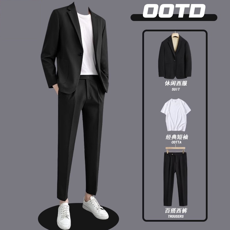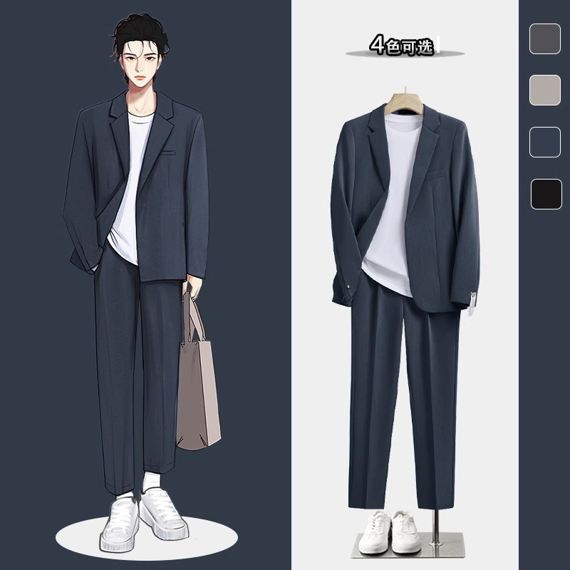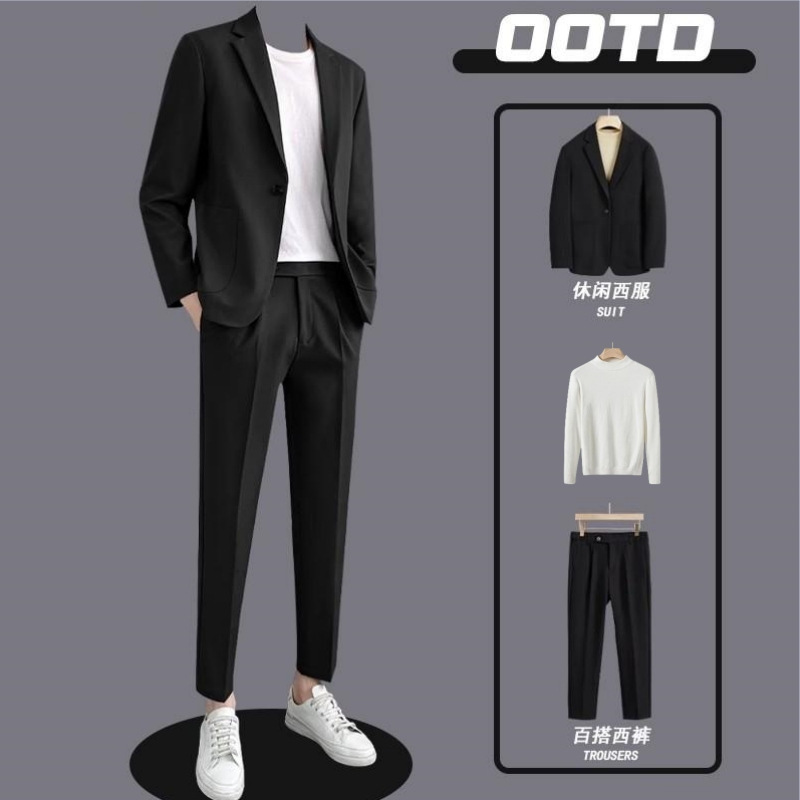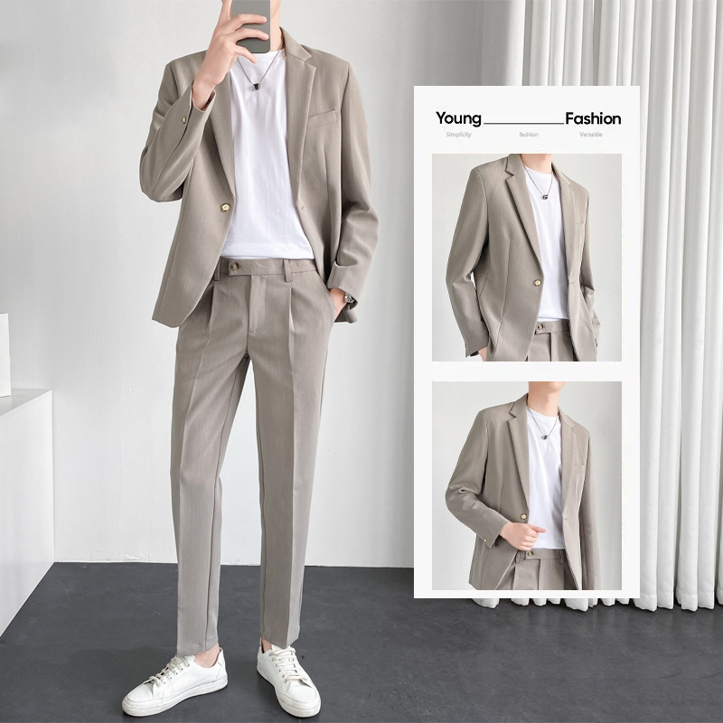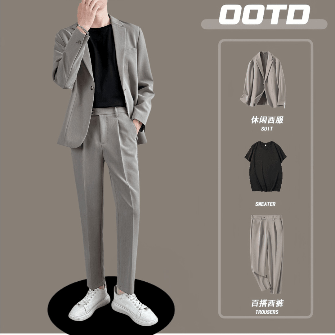 春と秋の軽熟のごろつきのハンサムなスーツのスーツのハンサムなカジュアルなスーツのスーツのスーツのズボンのセットはハンサムな男性を組み合わせます。