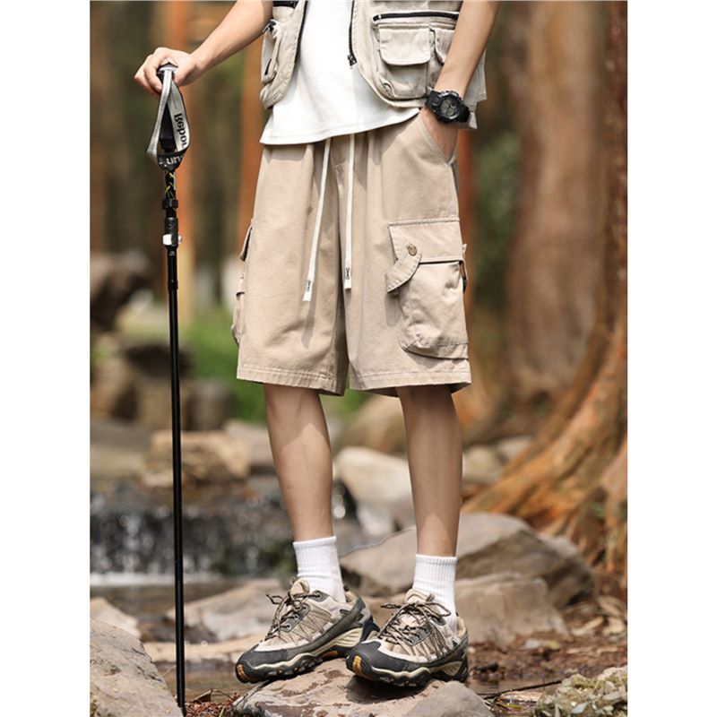 山系カーキ色工装半ズボン男子夏アメリカレトロカジュアル五分ズボンファッションブランドゆるいスポーツパンツ